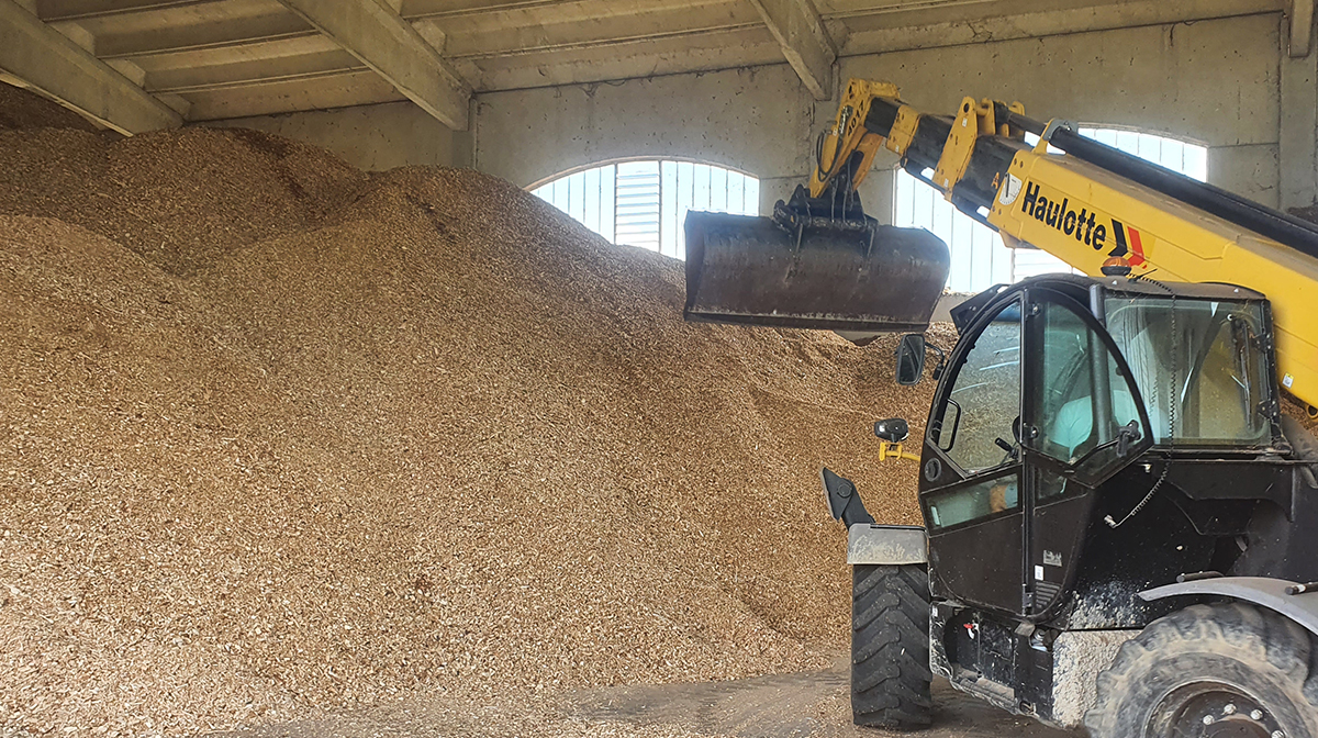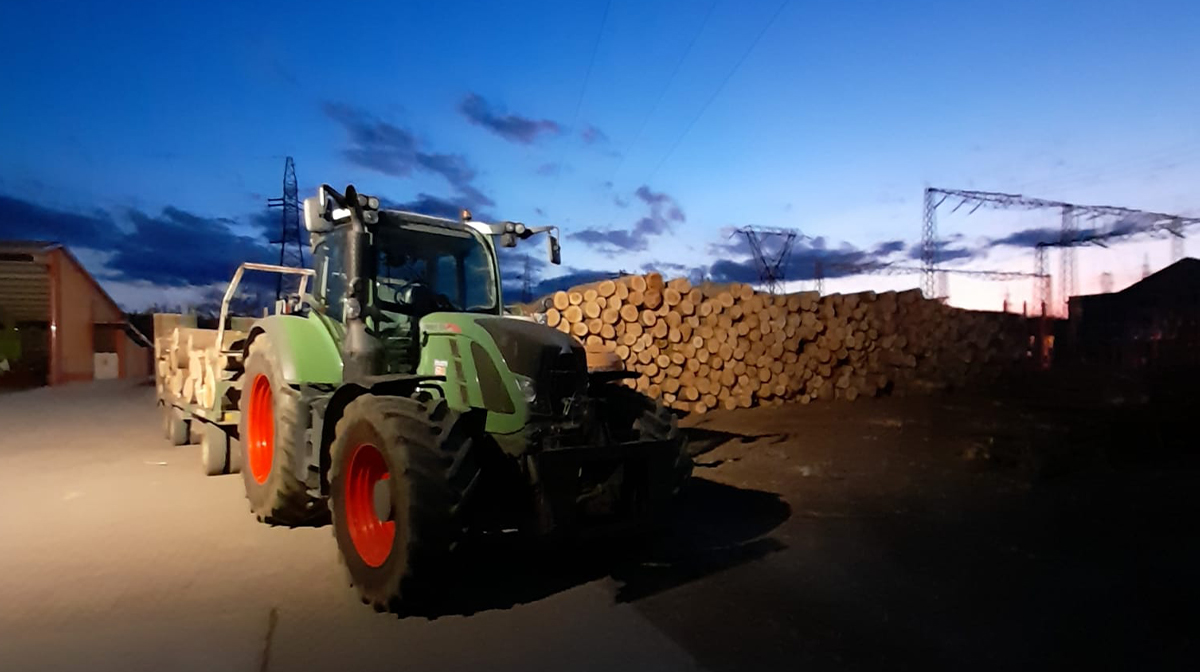 Il legname prodotto dall’azienda deriva quasi interamente da alberi tagliati, accatastati e naturalmente essiccati interi per poi essere cippati o tagliati.