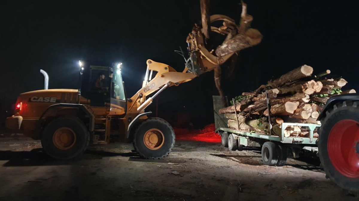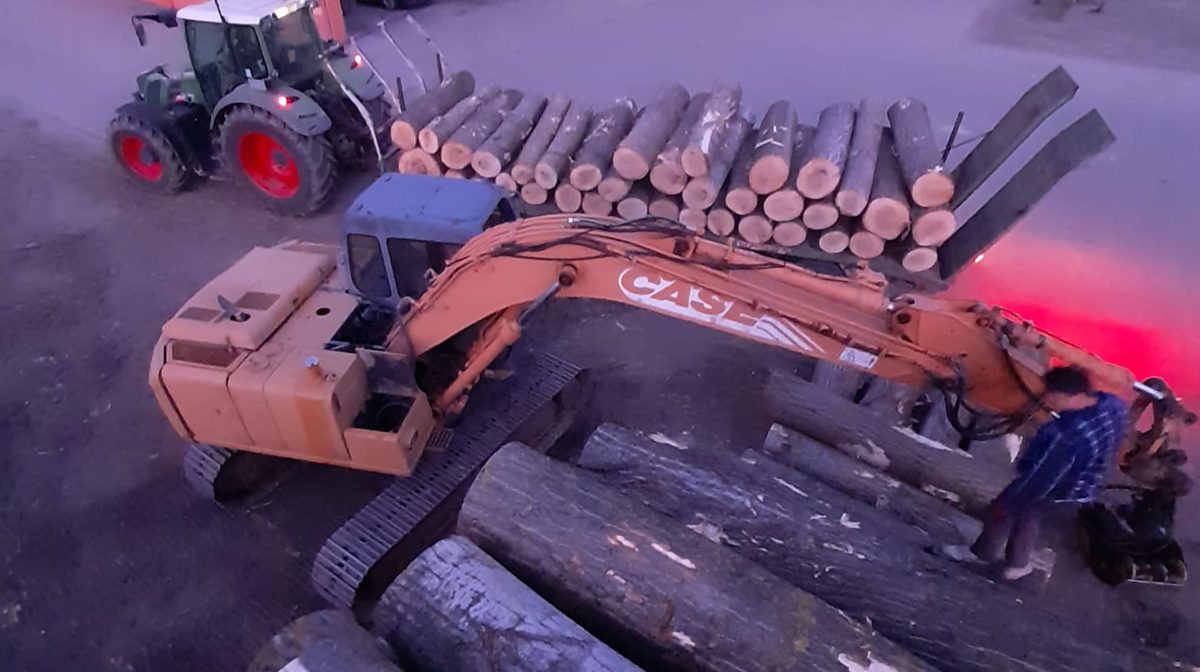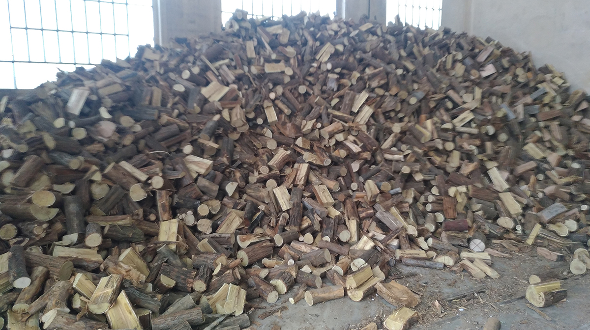 Il legname prodotto dall’azienda deriva quasi interamente da alberi tagliati, accatastati e naturalmente essiccati interi per poi essere cippati o tagliati.